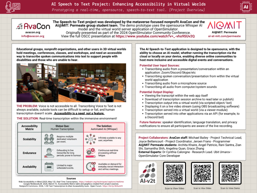 A prototype demo of the Speech-to-Text project was developed by the metaverse-focused nonprofit AvaCon and the AI@MIT: Permeate group students team.