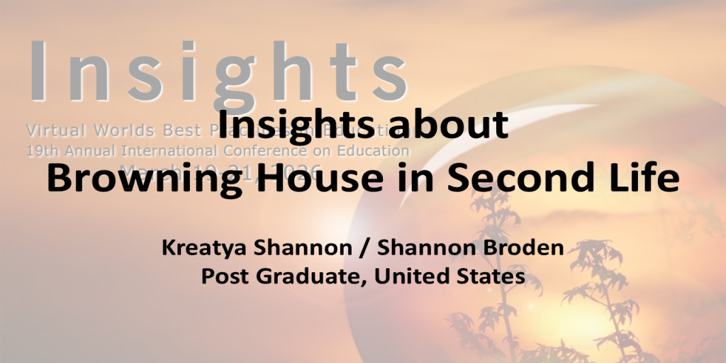 Kreatya Shannon gives an in-depth look at how the Elizabeth Barrett Browning House – first created as a graduate student while at San Jose State University – motivated her to keep learning in Second Life and other virtual worlds, and what other doors this “passion project” opened for her from 2022 through 2026.